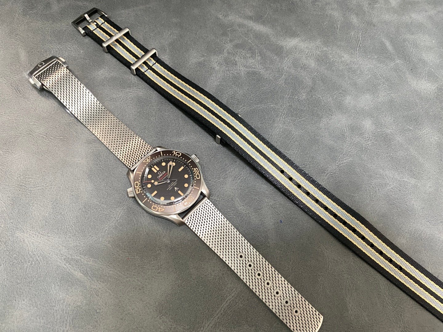 No Time to Die 007 upgraded with a brand new titanium mesh strap weighing only 37.3 grams. It is known as the lightest titanium mesh strap on the Internet! Developed with the original mold and manufactured with the original craftsmanship. The whole watch is made of titanium and is light to wear. The quality and craftsmanship of a big factory. It is really important to choose the right version!