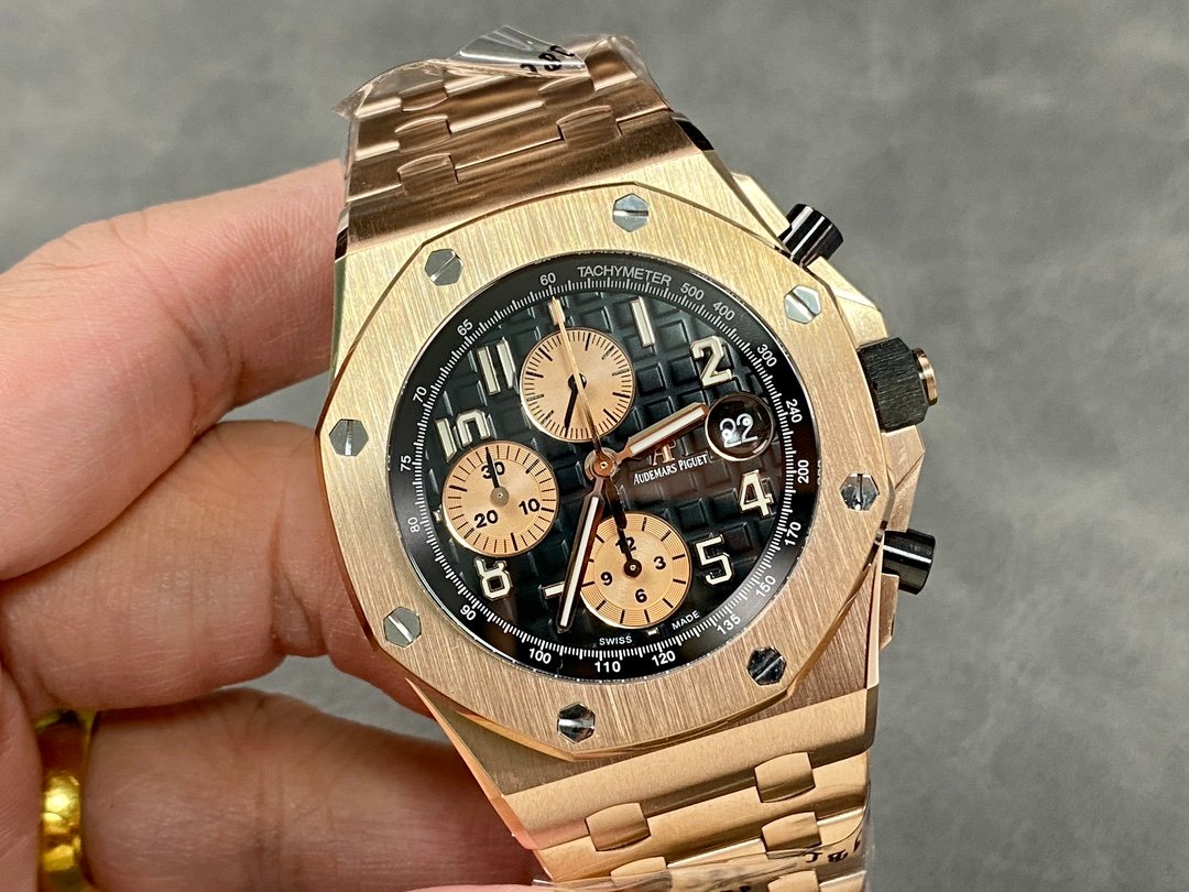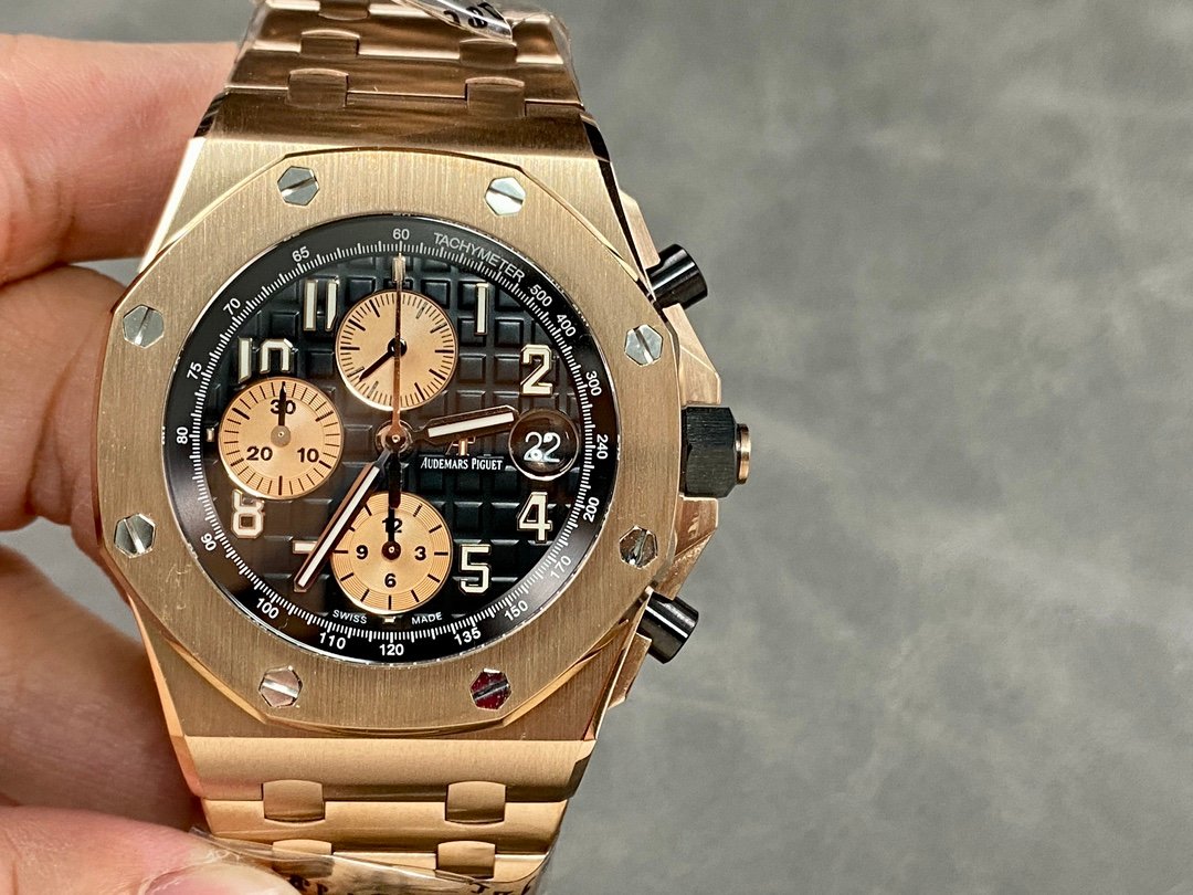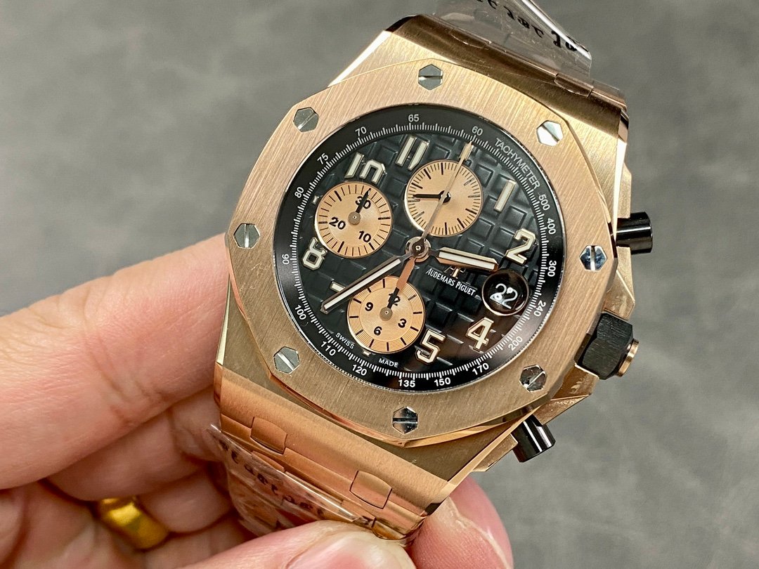 Royal Oak Offshore series 42mm, the top of the steel band version, the exclusive original process loosens the head grain, breaking the barrier that the steel band on the market cannot loosen the head grain, realizing the original process, and making the steel band fit the wrist more closely.