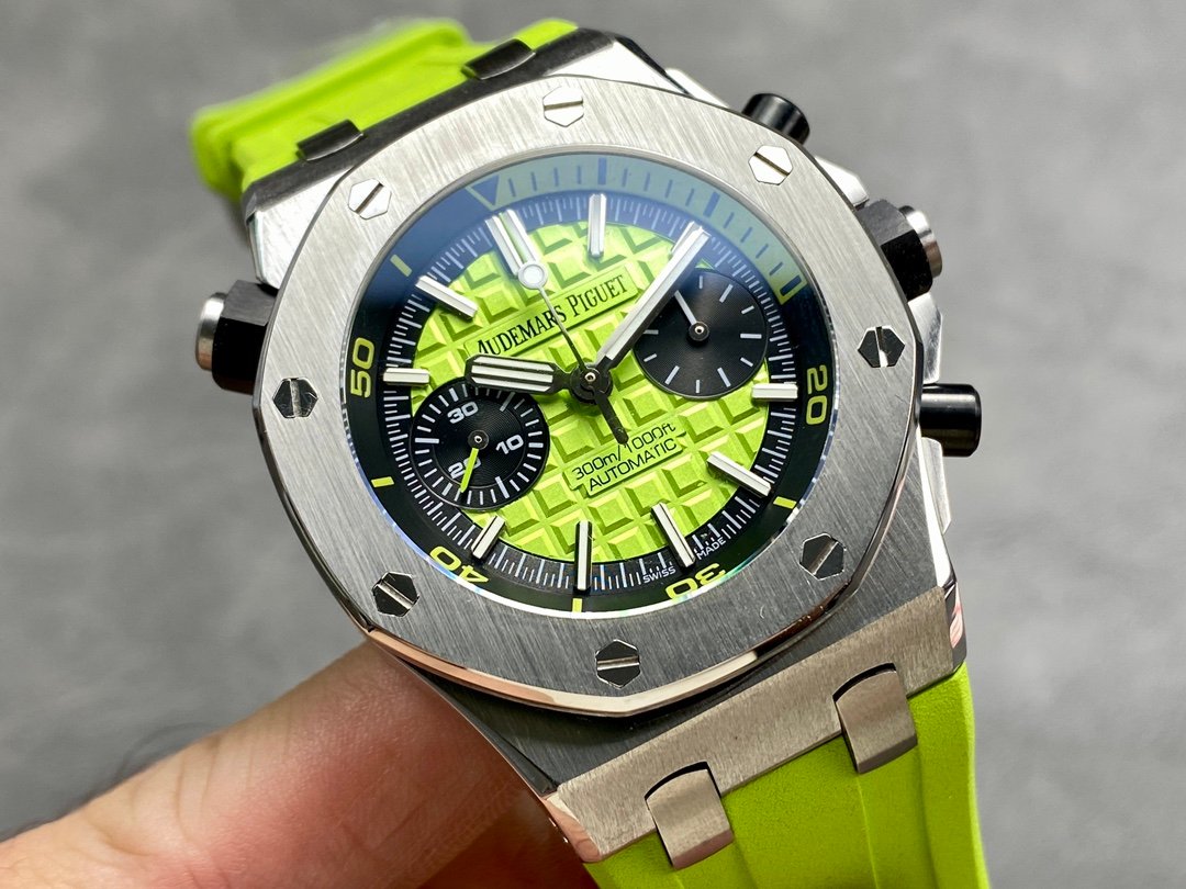 2. The dial has a well-arranged pattern with a strong three-dimensional sense. The thickness and length of the scale lines are consistent with the original. The bar nail hour markers are filled with super luminous materials. The two groups of small discs are symmetrically distributed, like two small eyes. There are circles of magnifying rings inside the disc, and the details are handled very well.
