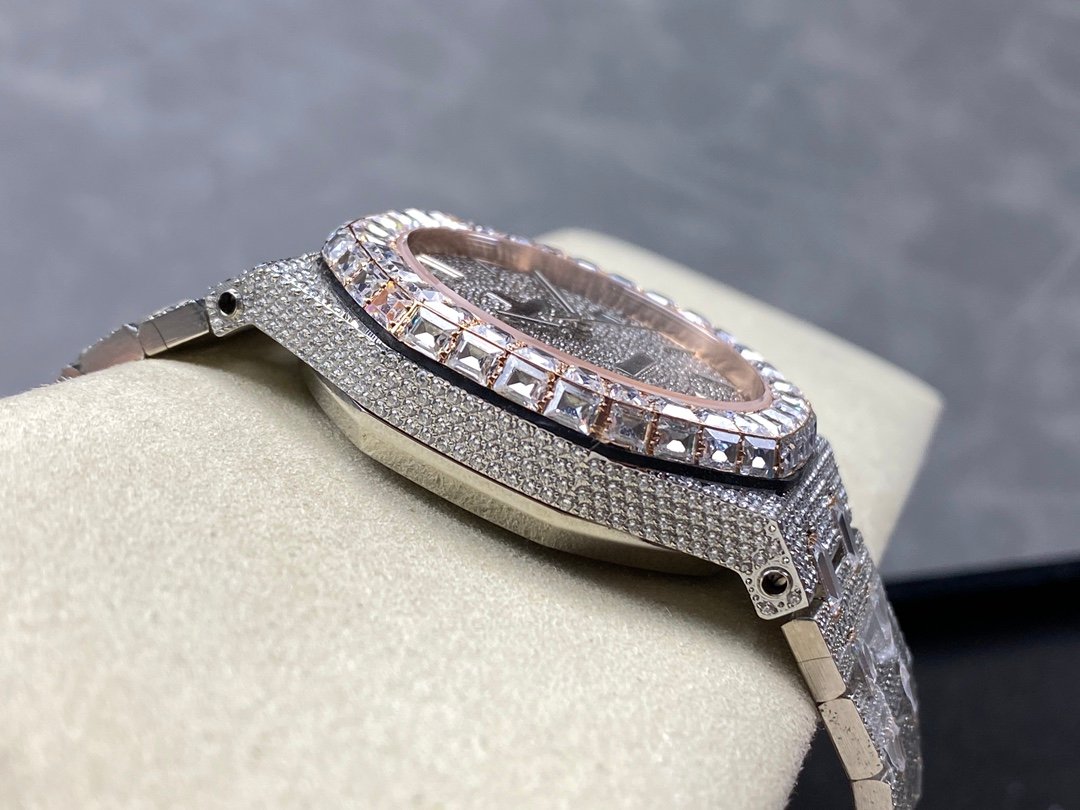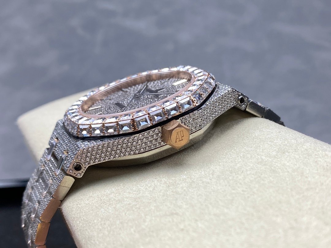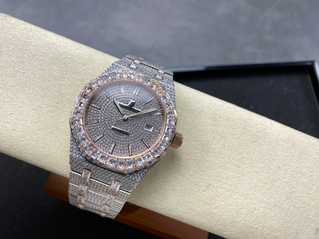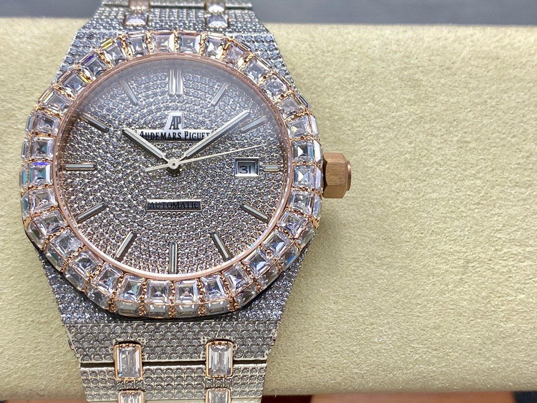 New bezel with square diamonds, fully automatic mechanical men’s watch, Royal Oak 15400 with 316L stainless steel case, all hand-set diamonds, ultra-luxury version.