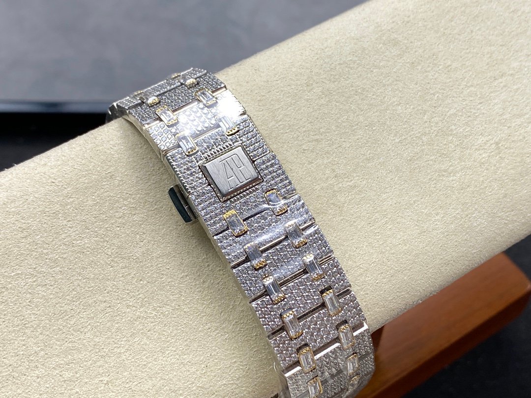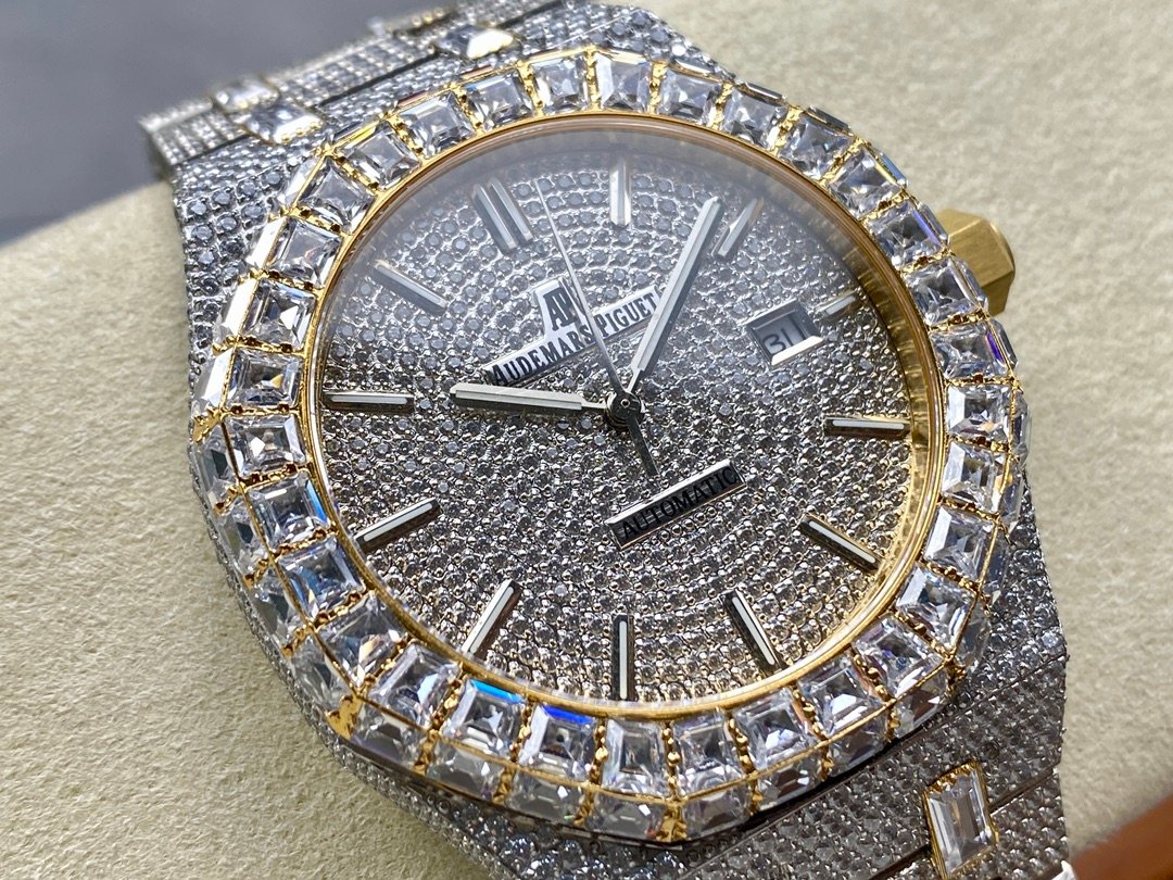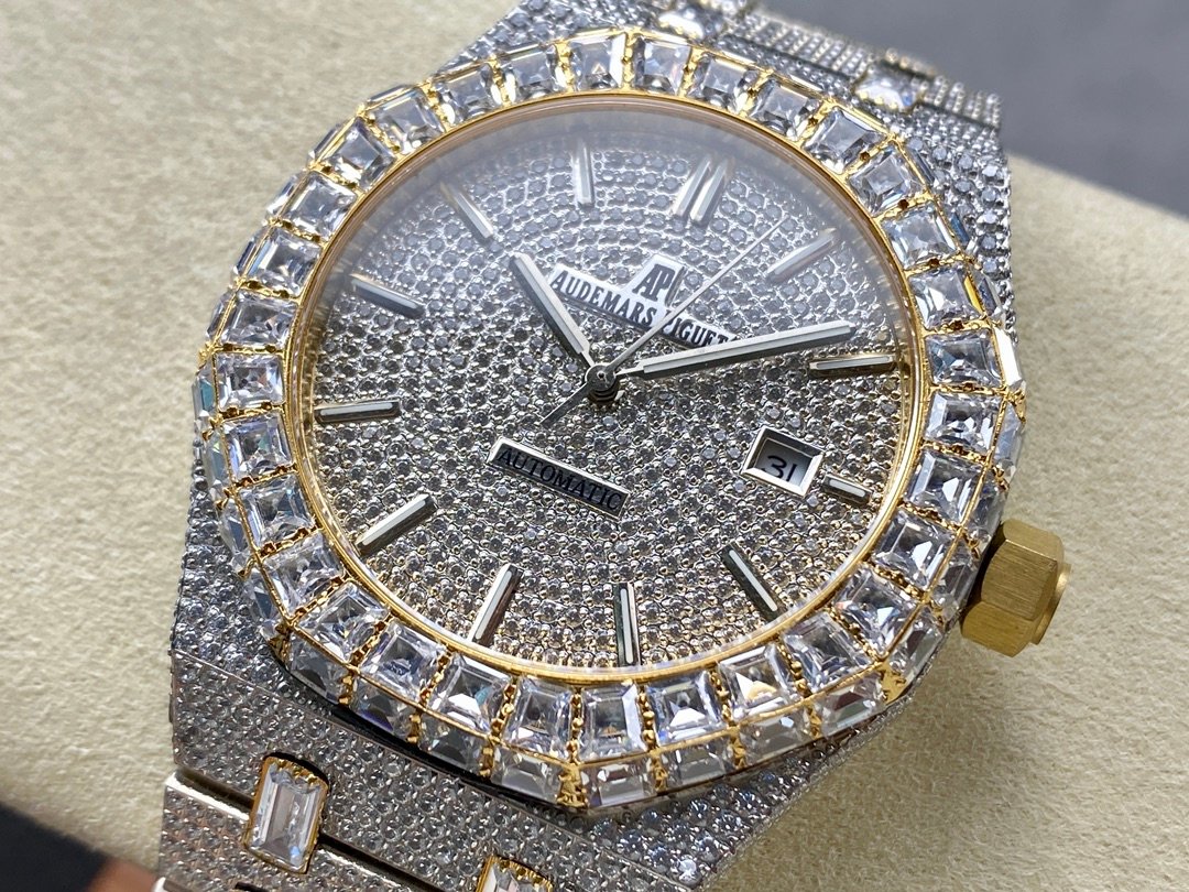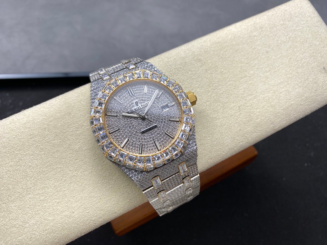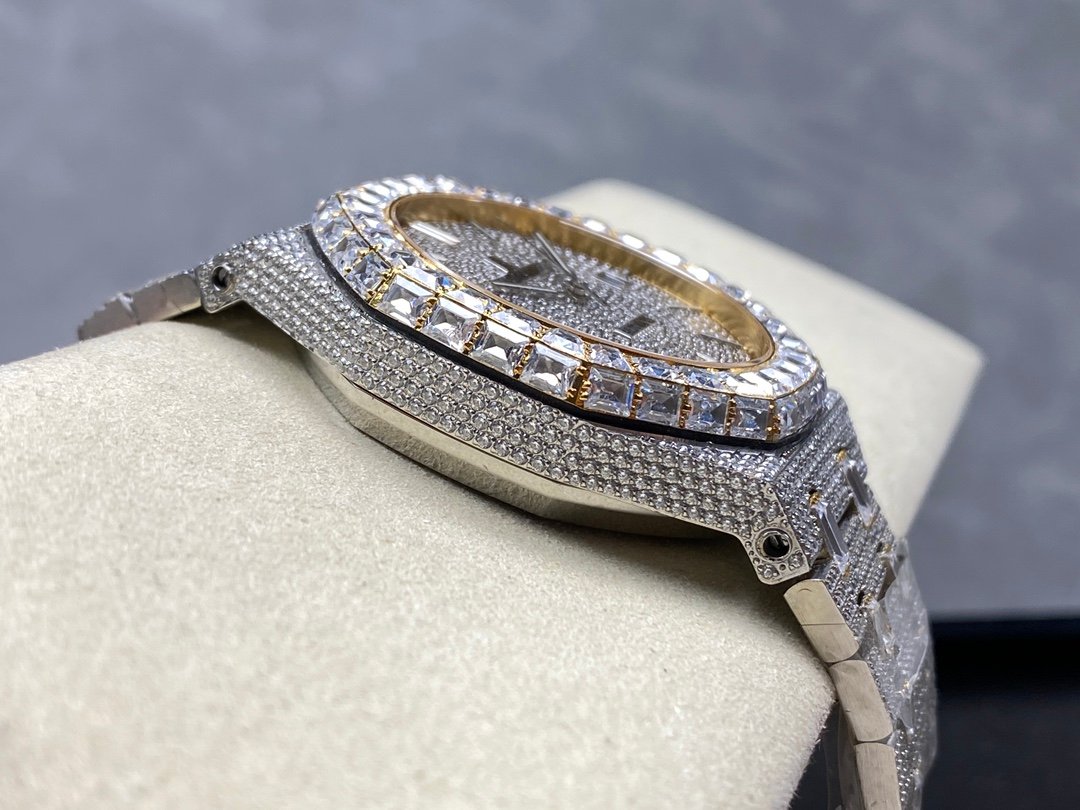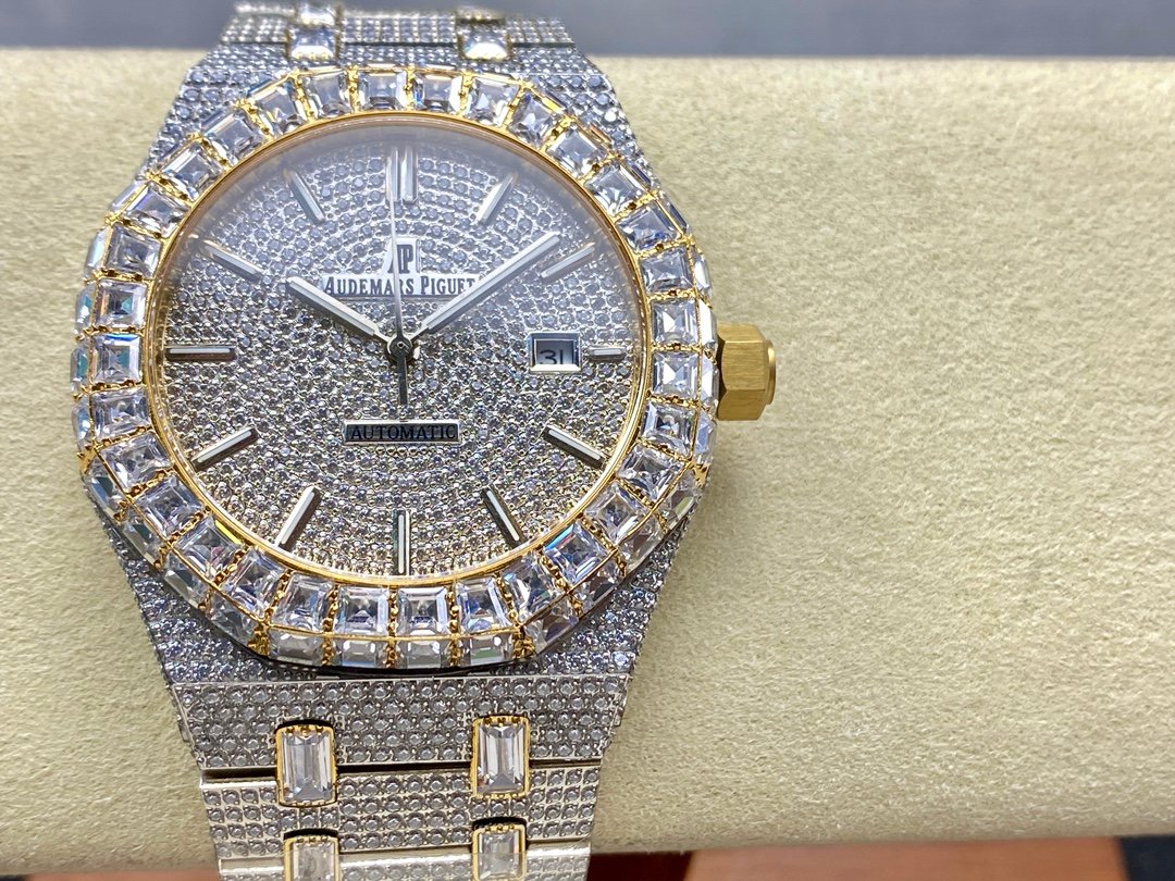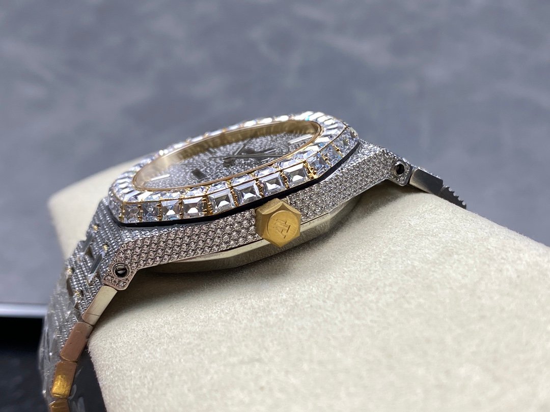 New bezel with square diamonds, fully automatic mechanical men’s watch, Royal Oak 15400 with 316L stainless steel case, ultra-luxury version, hand-set with diamonds, looks good with any combination, timeless style, classic and durable, made of 316 steel, size: 42mm×12mm.