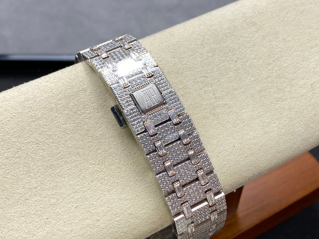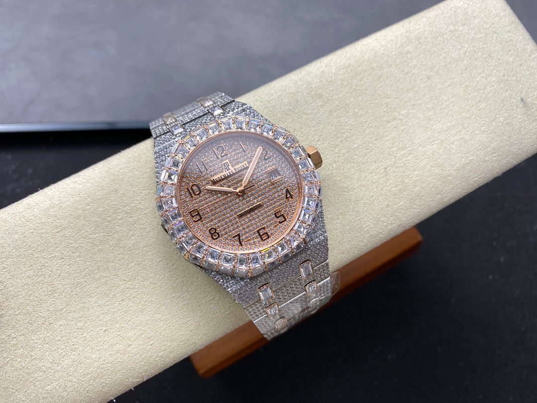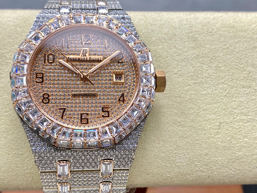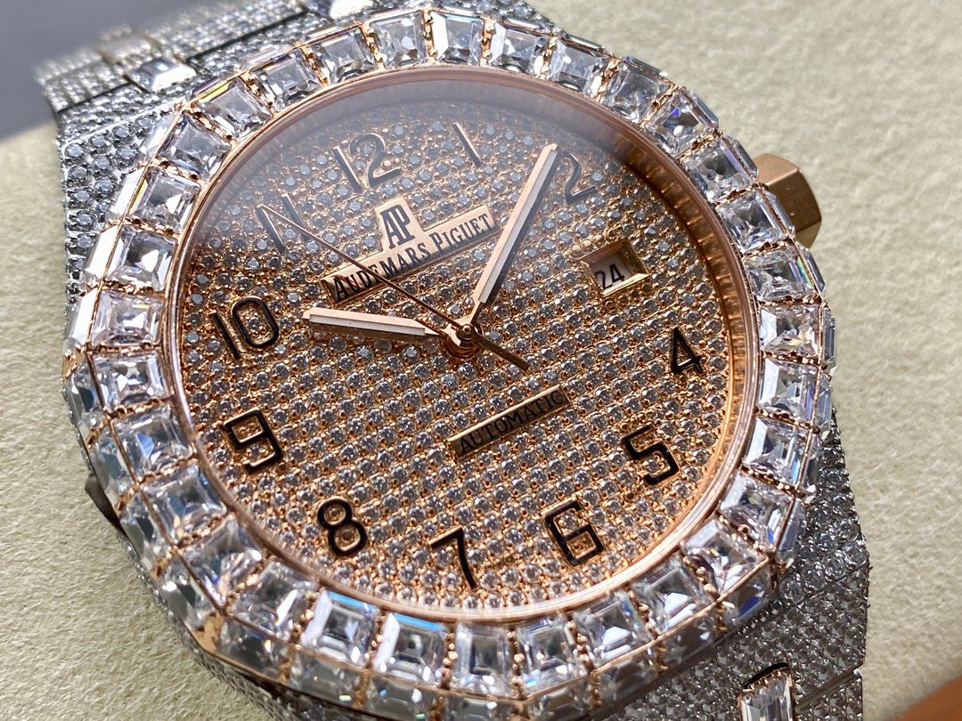 New bezel with square diamonds, fully automatic mechanical men’s watch, Royal Oak 15400 with 316L stainless steel case, all hand-set diamonds, ultra-luxury version.