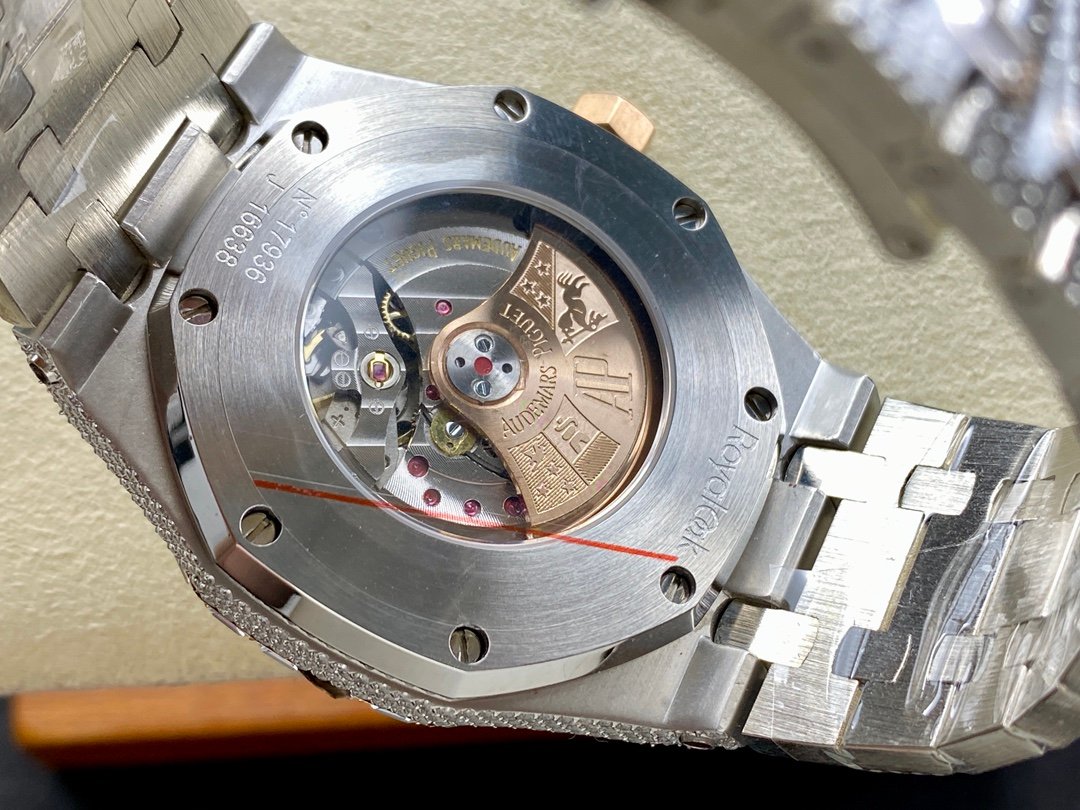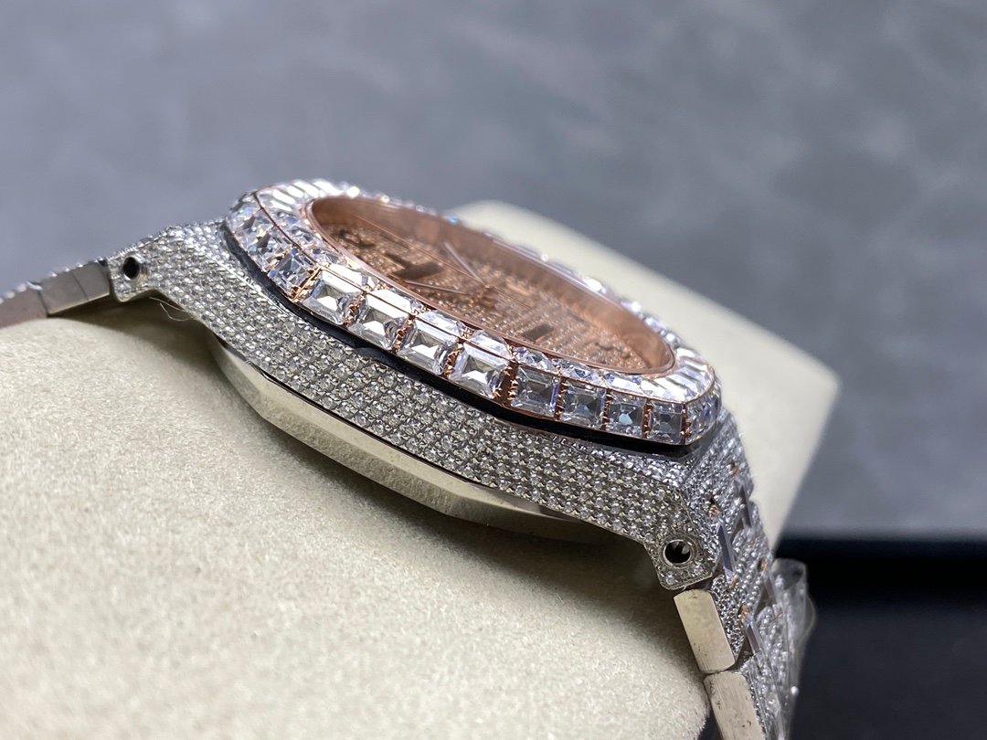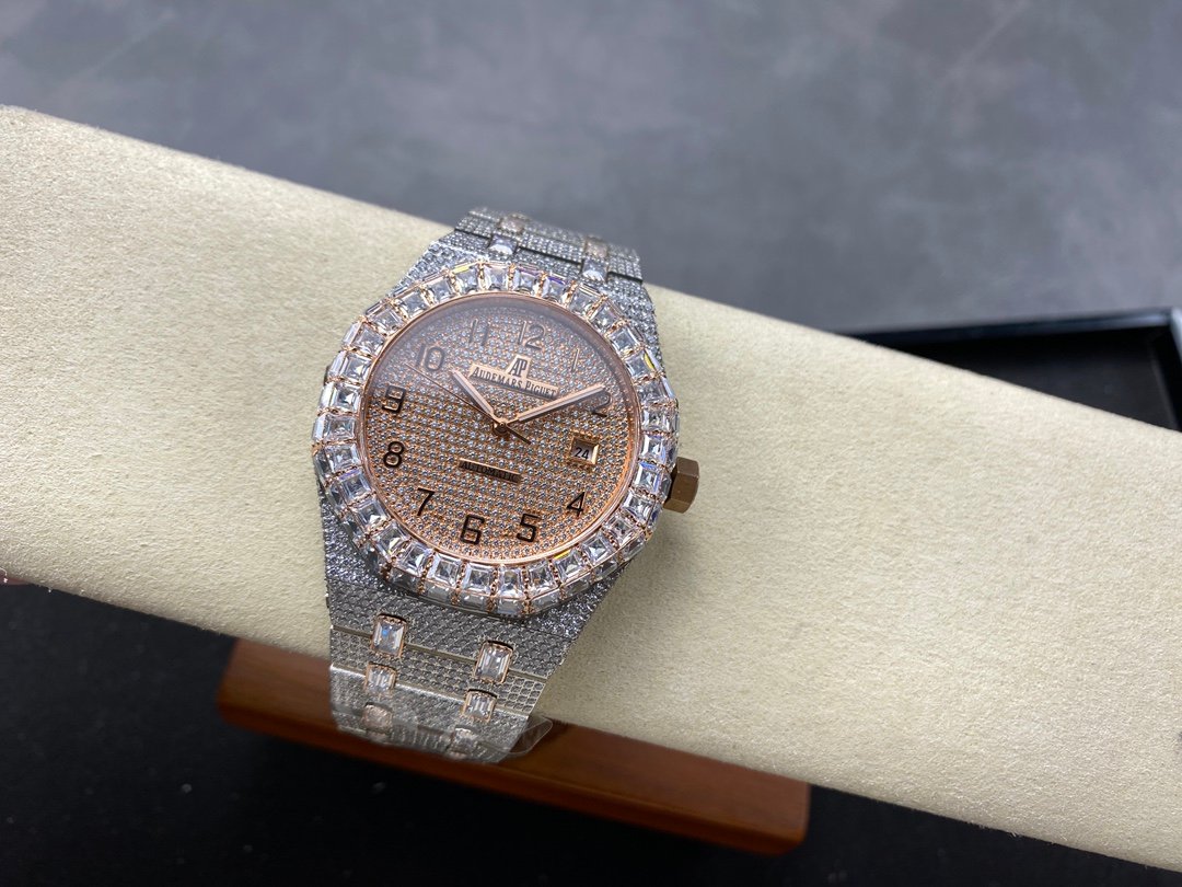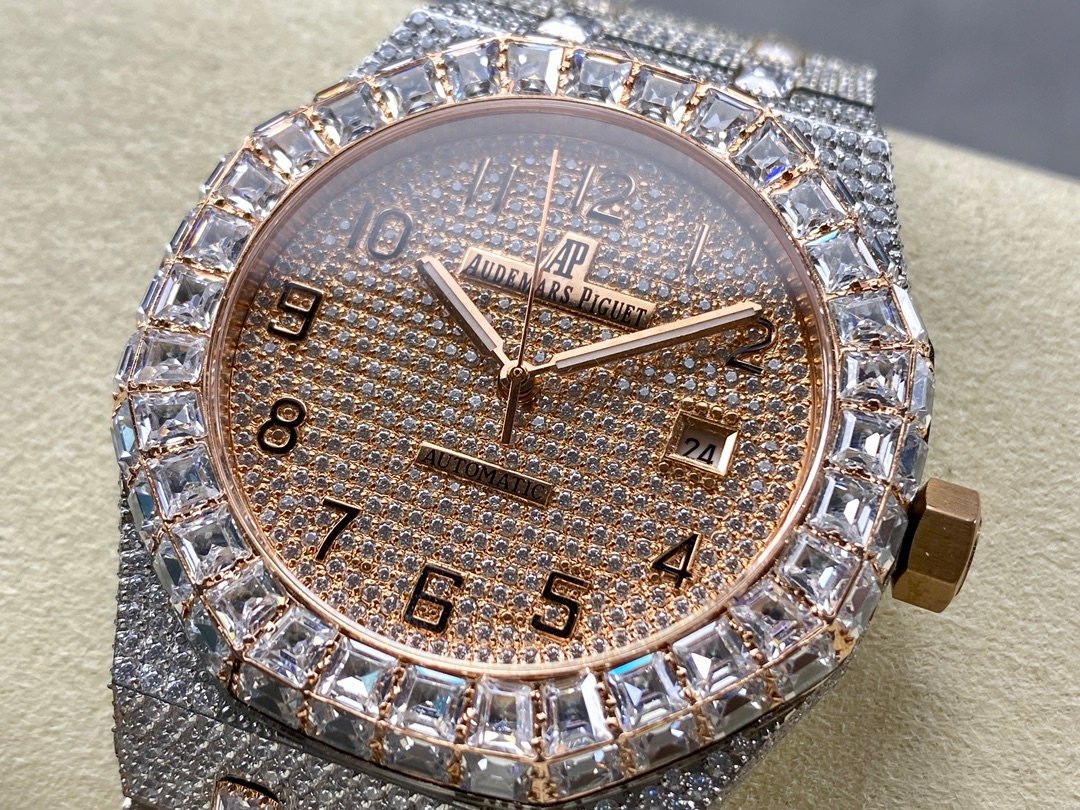 New bezel with square diamonds, fully automatic mechanical men’s watch, Royal Oak 15400 with 316L stainless steel case, all hand-set diamonds, ultra-luxury version.