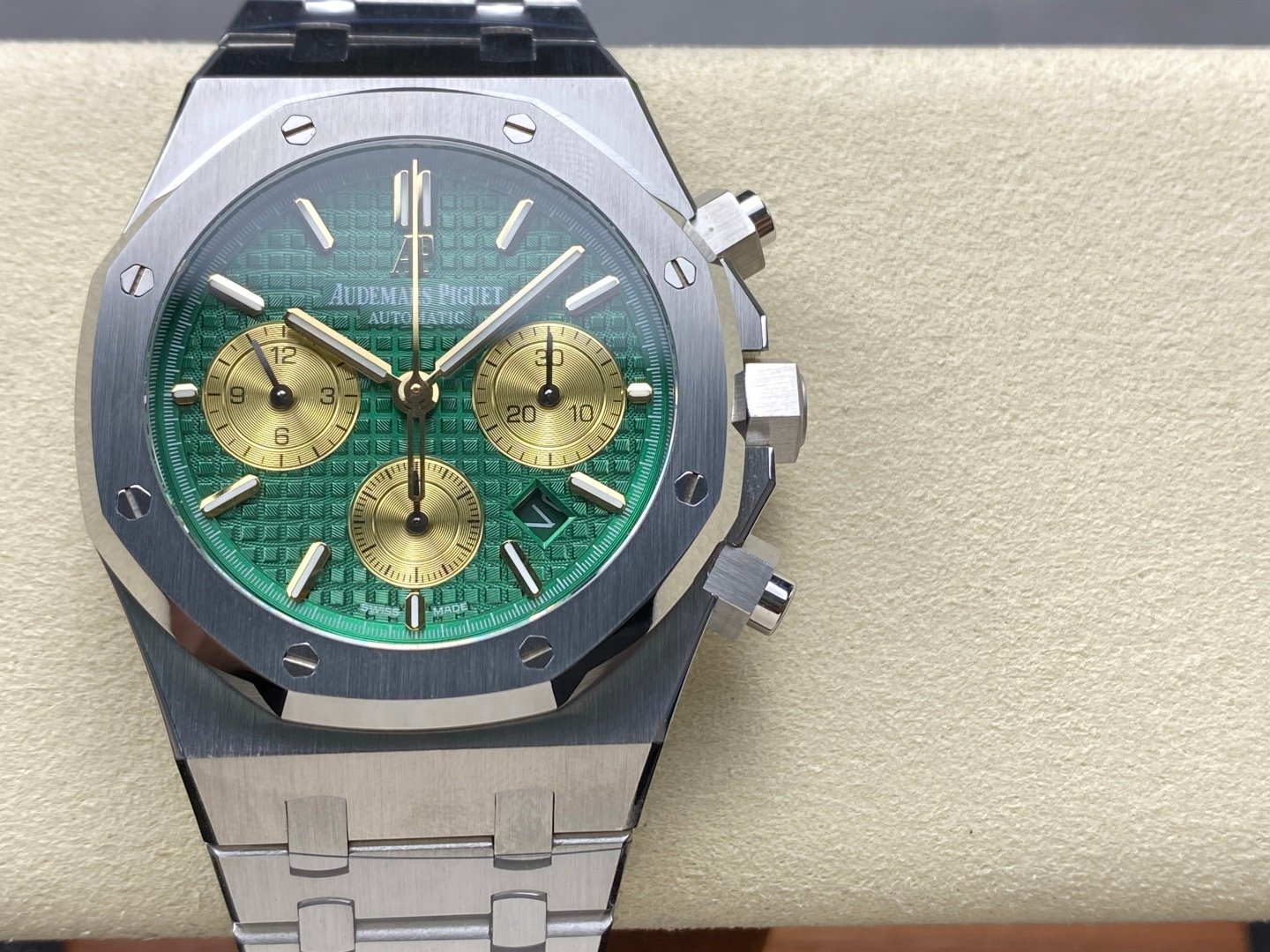 Audemars Piguet Royal Oak 26331OR Chronograph uses the same Swiss movement as the original. The 316 stainless steel case is brushed and partially polished, showing a unique temperament of exquisiteness and toughness. The rugged 41mm dial is full of power and has a super luminous display, which allows you to read the time in any environment.