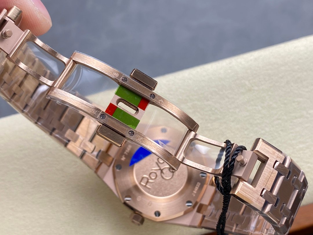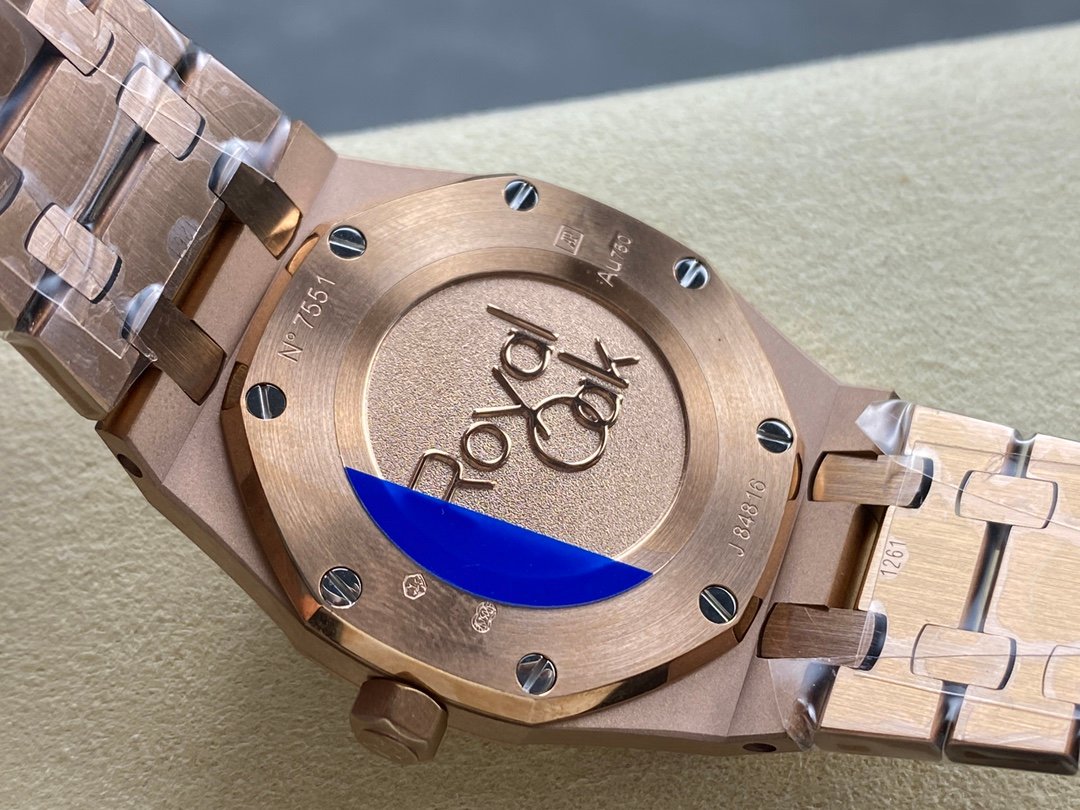 The watch has a closed case back, and the English name of the Royal Oak series “Royal Oak” is engraved on the case back.
