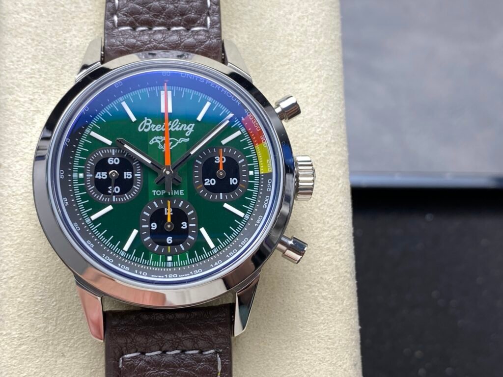 BLS new products V2 series exclusive B01 automatic mechanical movement Breitling B01 Chronograph (folding clasp) TOP TIME series color chronograph (Navitimer) Breitling reinterprets classic watches with bold colors. The size is 42mm, and the iteration is undoubtedly an authentic unique chronograph watch with a unique cover surface. It uses a 316 stainless steel bezel for easy grip and effectively protects the double-sided anti-glare sapphire mirror. The dial is available in black, blue and white, all decorated with large luminous hands and hour markers. Movement: The exclusive B01 automatic mechanical movement is perfect in workmanship. Welcome to taste it.