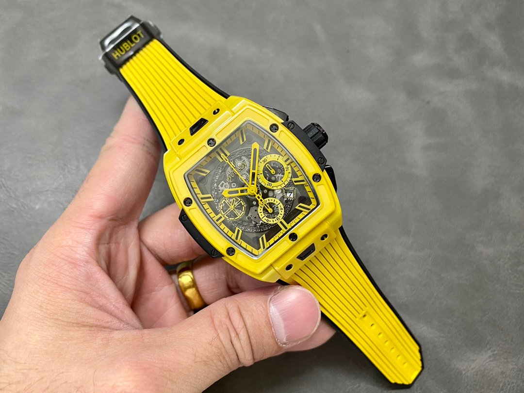 Hublot launches the new Spirit of Big Bang limited edition watch! Barrel-shaped hollow diameter 42. Ceramic and titanium. Anti-glare sapphire glass. Imported rubber quick-release strap with folding buckle.