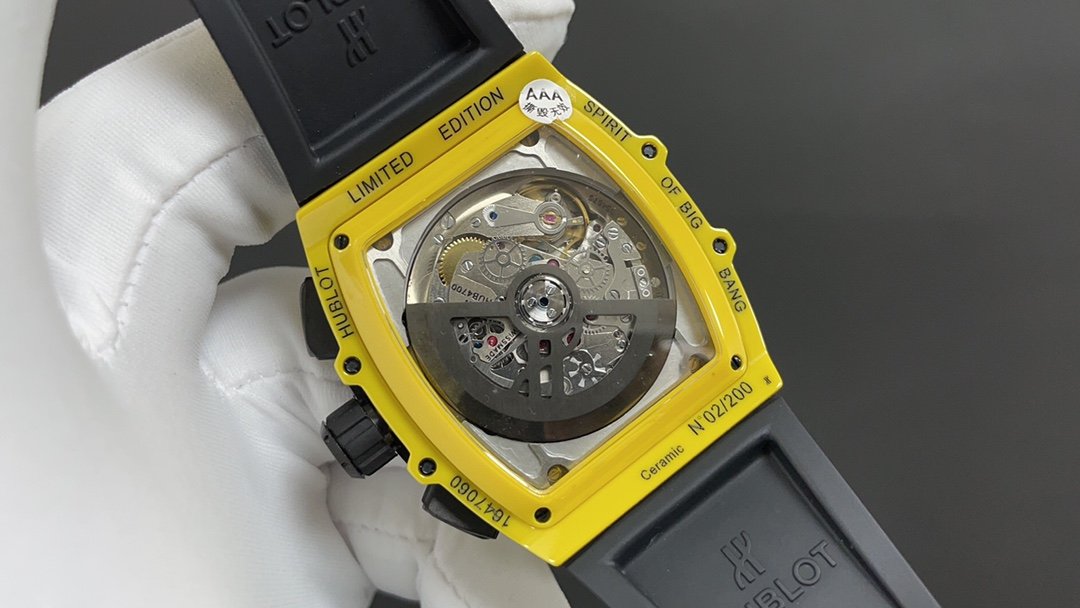 Hublot launches the new Spirit of Big Bang limited edition watch! Barrel-shaped hollow diameter 42. Ceramic and titanium. Anti-glare sapphire glass mirror.