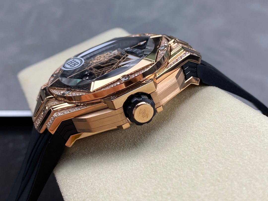 The Tattoo II watch uses a more refined line design to create a three-dimensional and vivid visual experience. The case diameter is 45mm, and the graphic elements run through the case and are integrated into the hexagonal bezel through cutting and engraving. 6 H-shaped titanium screws firmly fix the bezel. The lugs have a strong sense of design, with steep angles and tough lines.