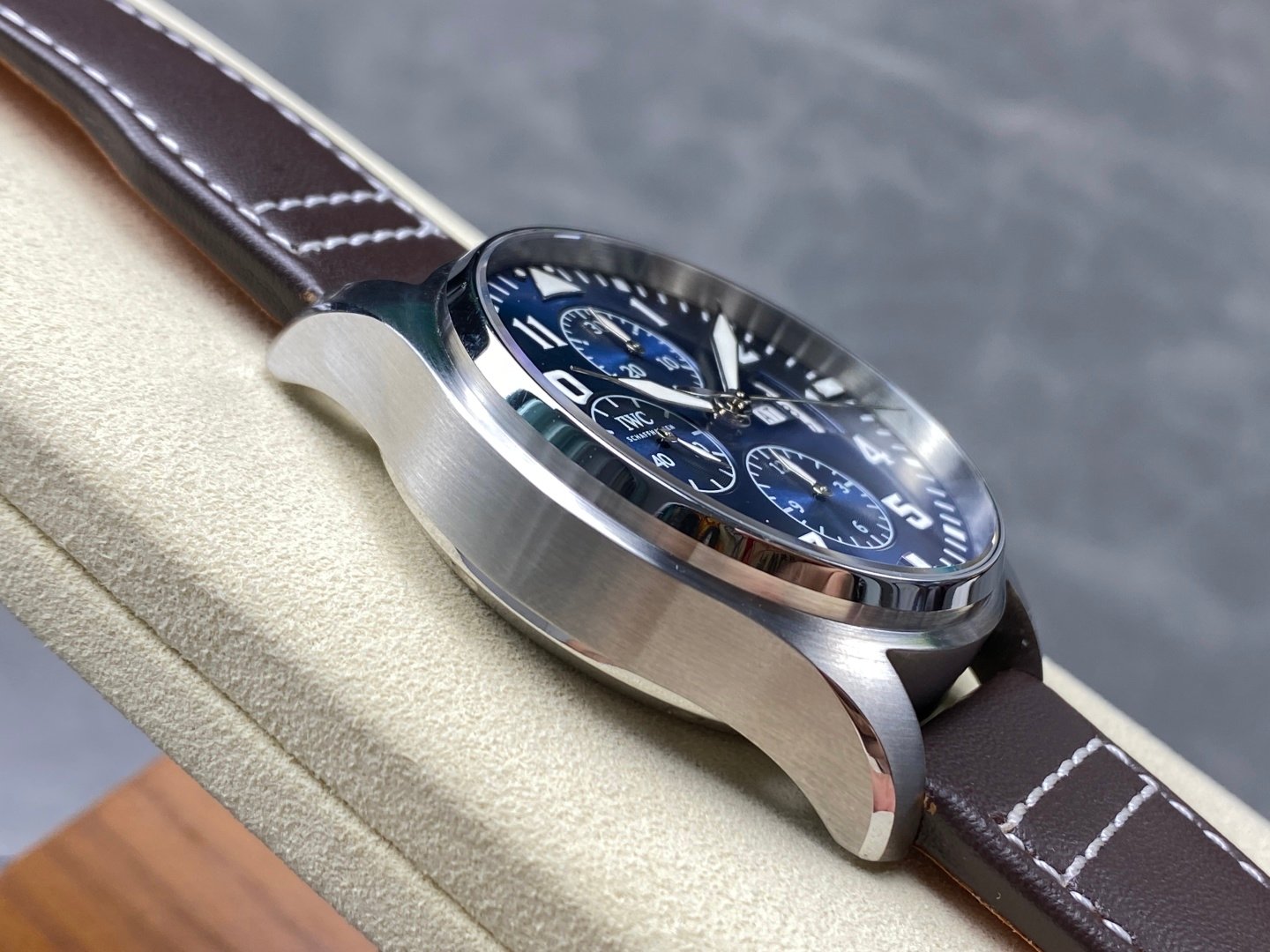 The watch is made of rose gold-plated high-tech, mature workmanship, clear lines and rich three-dimensional sense, harmonious color matching, very versatile. Compared with the previous pilot, the size of the new timepiece has been upgraded to 43m, which is more in line with the golden size of modern men’s watches! The dial design continues the classic cockpit instrument panel style of the pilot. The combination of green and red gold makes the watch look brand new and luxurious.