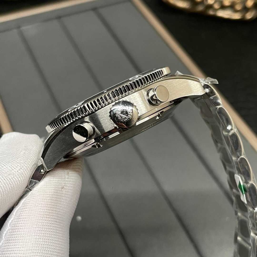 1⃣️Diameter 42 mm, bidirectional rotation with black and blue ceramic matte bezel, Arabic numerals through black holes luminous, synchronized with the official website.