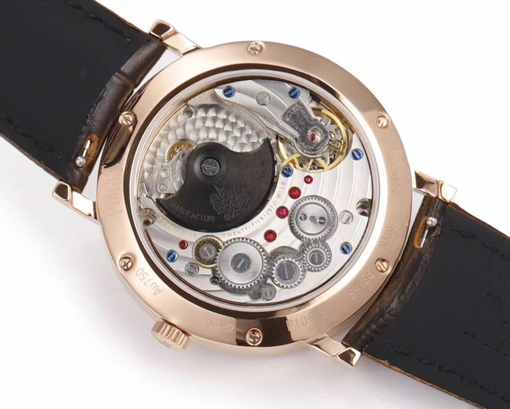 New Piaget Altiplano Origin watch, model GOA45403, with a diameter of 40 mm, combines fashion and classic style with exquisite ultra-thin watchmaking technology to become your loyal companion. The men’s high-end watch is equipped with the 1205P1 movement, setting a double world record. The complex functions of this Altiplano ultra-thin watch use the concept of micro-rotor and are equipped with a 3 mm movement. The total thickness of this watch is only 10 mm, which is an ultra-thin design among similar watches, which is amazing. The dial is equipped with baton-shaped hour markers and classic cowhide, adding elegance and charm to the exquisite craftsmanship. The hour markers are arranged alternately on the double-layer structure dial, the small second hand is at 4 o’clock, and the date display is at 9 o’clock. This ultra-thin men’s watch exudes elegance, embodies the spirit of courage to break through, and shows the fusion of watchmaking skills and aesthetic traditions! Please look for exclusive quality! [Rose]