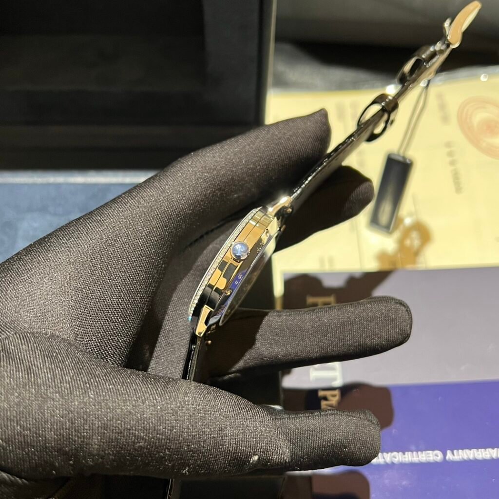 New Piaget Altiplano Origin watch, model GOA45403, with a diameter of 40 mm, combines fashion and classic style with exquisite ultra-thin watchmaking technology to become your loyal companion. The men’s high-end watch is equipped with the 1205P1 movement, setting a double world record. The complex functions of this Altiplano ultra-thin watch use the concept of micro-rotor and are equipped with a 3 mm movement. The total thickness of this watch is only 10 mm, which is an ultra-thin design among similar watches, which is amazing. The dial is equipped with baton-shaped hour markers and classic cowhide, adding elegance and charm to the exquisite craftsmanship. The hour markers are arranged alternately on the double-layer structure dial, the small second hand is at 4 o’clock, and the date display is at 9 o’clock. This ultra-thin men’s watch exudes elegance, embodies the spirit of courage to break through, and shows the fusion of watchmaking skills and aesthetic traditions! Please look for exclusive quality! [Rose]