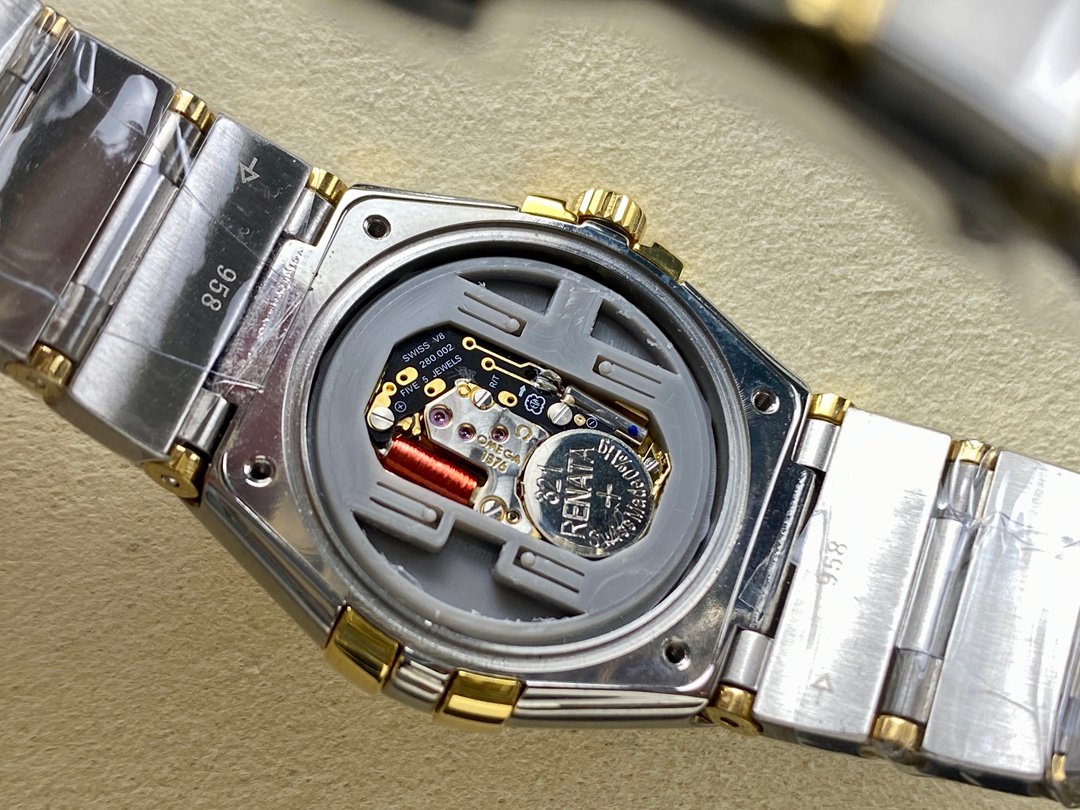 The 27 mm case is made of stainless steel and 18K red gold. The hands, diamond-set brackets and polished decorative strips on the stainless steel bracelet are also made of 18K red gold.
