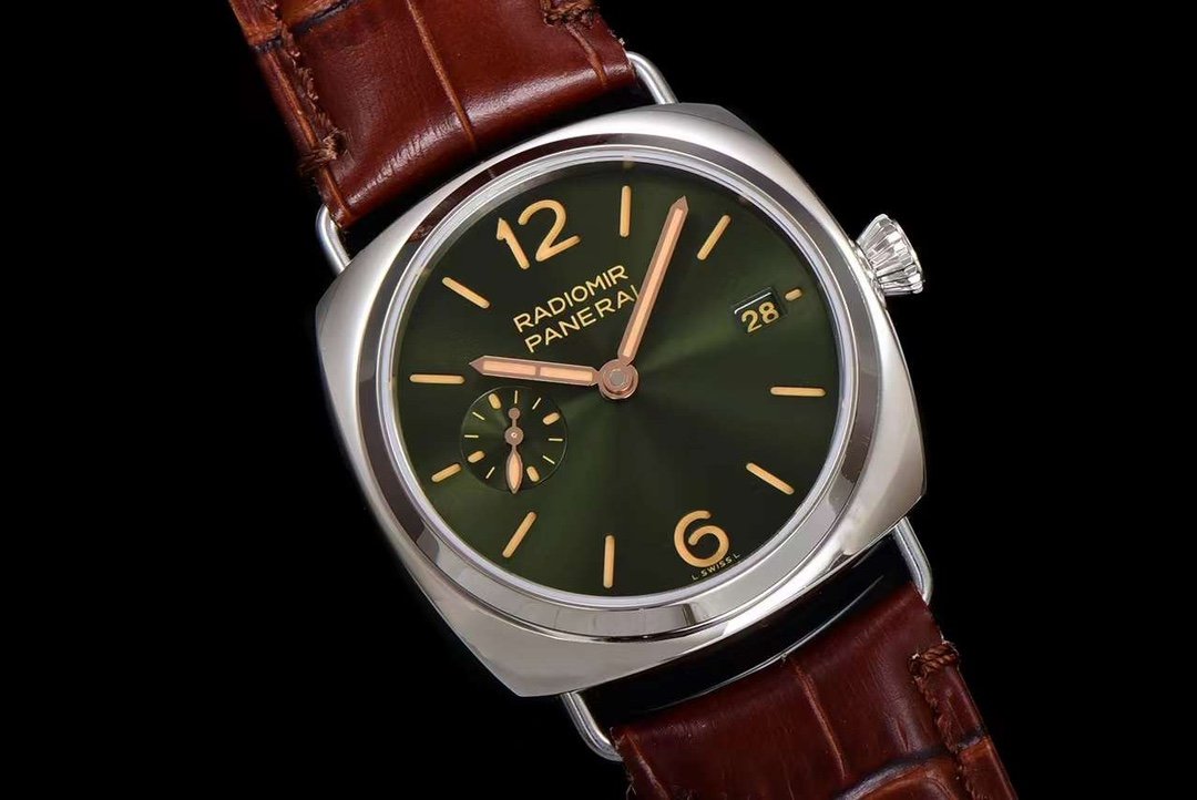 Radel series watch, stainless steel case with Italian imported calf leather strap, sapphire crystal glass, Arabic numeral dial, bar hour markers, luminous display. 316 stainless steel, size: 40mm