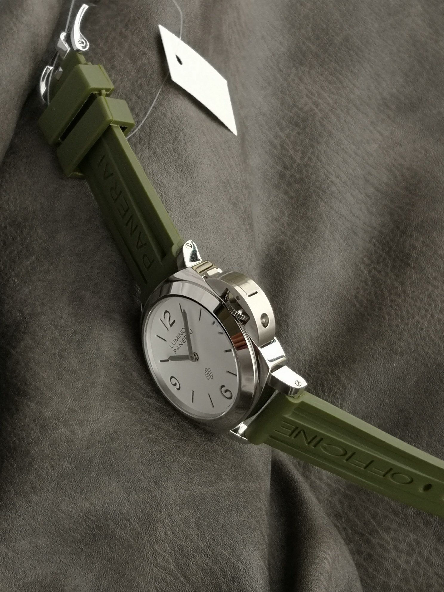 Super luminous, green rubber strap, 44mm diameter, white matte dial with polished stainless steel case, classic and simple, Panerai’s latest entry-level model.
