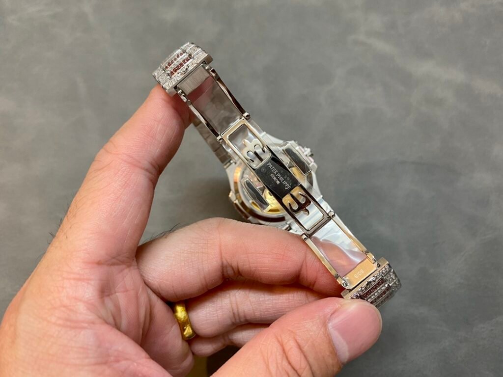 Case and strap: The rare “irregular snowflake inlay” process is used to inlay 1500 brilliant-cut rhinestones and 876 brilliant-cut ruby-sapphire-emerald rhinestones to make the watch more dazzling. This process requires diamonds of different sizes to be inlaid and fixed in place to hide the traces of precious metals before each diamond as much as possible.