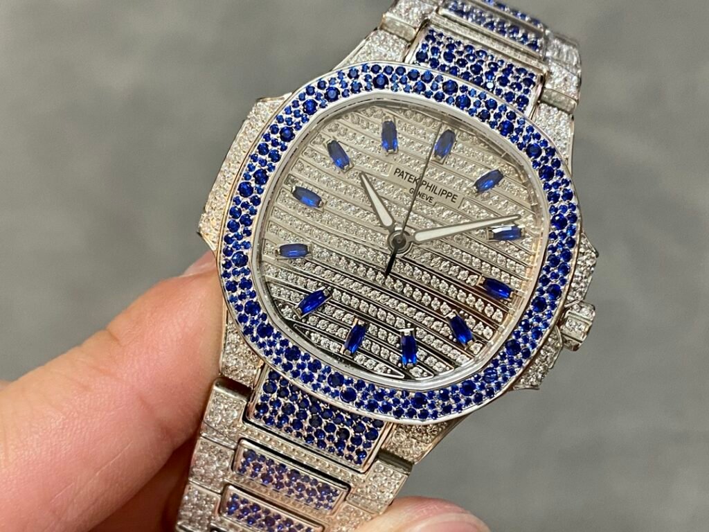 The starry sky female Nautilus has arrived! A classic timepiece made with a lot of money – Patek Philippe 7118 Women’s Nautilus Full Diamond Limited Edition Arrived in small quantities, three 7118 full brick watches are inlaid with rubies, sapphires, and emeralds in three different colors of gemstones, and are limited in supply (the whole body is made of eight hearts and eight arrows natural Opal rhinestones)