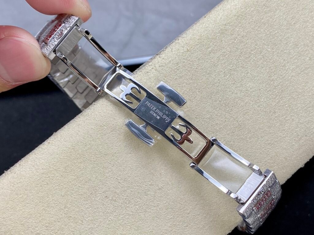 Case and strap: The rare “irregular snowflake inlay” process is used to inlay 1500 brilliant-cut rhinestones and 876 brilliant-cut ruby-sapphire-emerald rhinestones to make the watch more dazzling. This process requires diamonds of different sizes to be inlaid and fixed in place to hide the traces of precious metals before each diamond as much as possible.