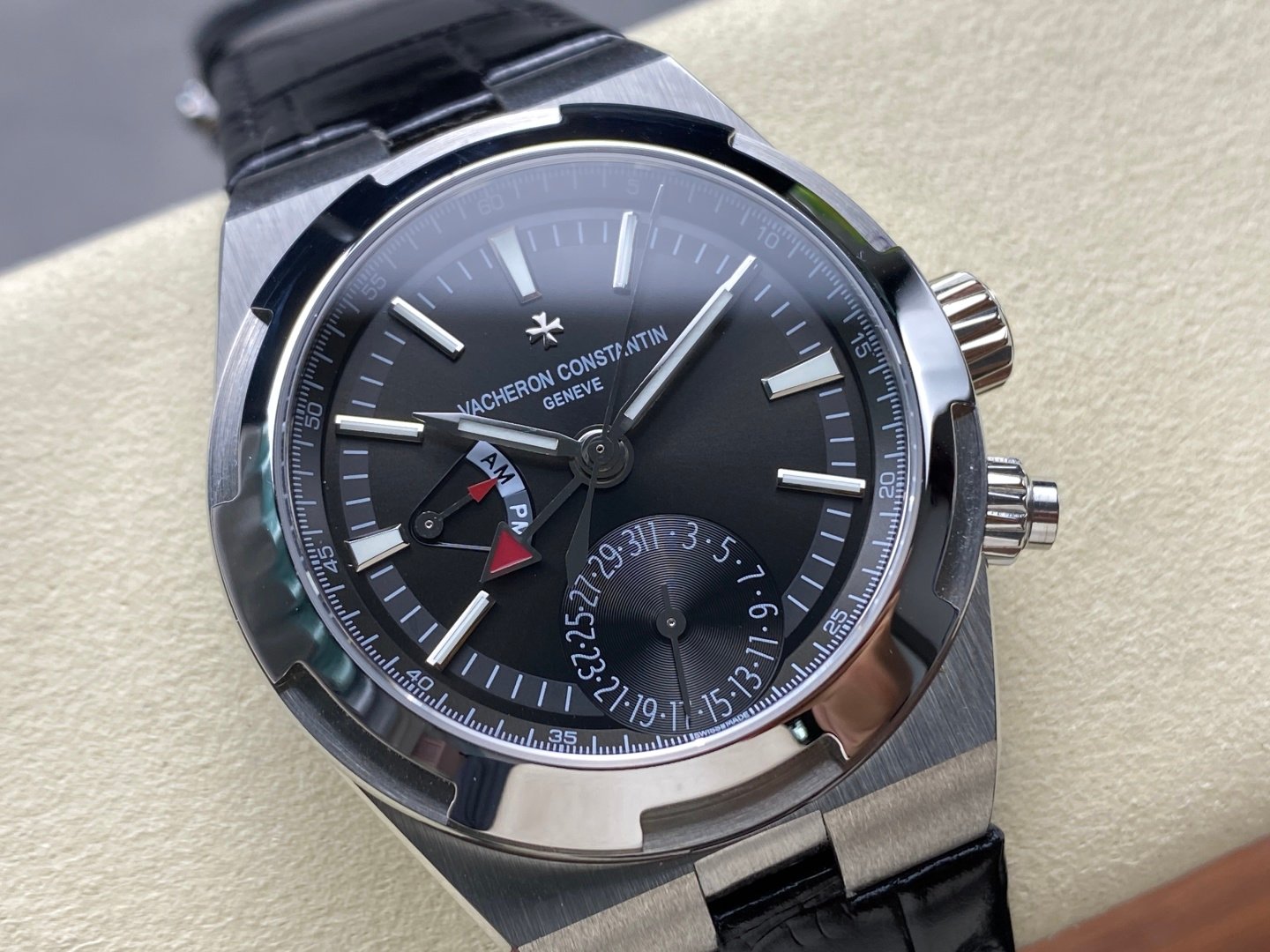 The top luxury classic steel case has smooth lines and delicate texture, which can be perfectly linked to the bracelet, the back strap is stamped with the Vacheron Constantin Maltese cross, the sunburst satin-brushed dial with velvety smooth edges, showing a deep or agile brilliance with changes in light and angle, equipped with an original movement, the function is completely identical, which can ensure a 48-hour power reserve, and the launch of four quick-release straps is easy to disassemble. The diversified options of advance and retreat are to give the invincible commuting all over the world, the steel belt is hard, and the tape is lightweight. Combining athleisure and business, it is a high-end watch that combines exquisite appearance with excellent functionality.