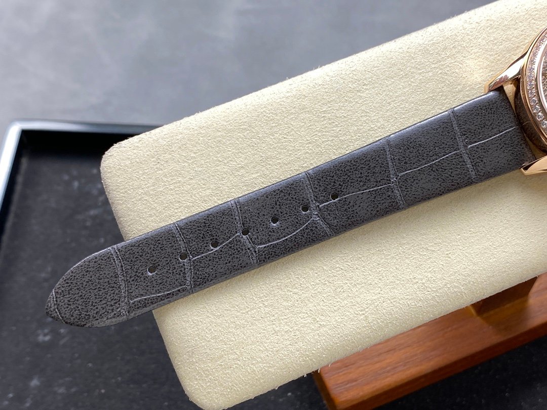 The ultra-thin mechanical women’s watch continues the collection! The new opaline dial is adorned with sparkling diamonds and the ruffles have been fine-tuned over several months using the traditional “tapestry” technique.⚠️ The crown is adorned with a curved-cut moonstone symbolising calm and serenity, the oblate shape is official, and the off-centre round dial with sparkling diamonds shows the time in a dreamlike way.⚠️ The moon phase model (8005F/000R) is beautifully carved into white clouds of mother-of-pearl bricks.Equipped with an automatic movement that perfectly captures the moon phases, it is elegant and luxurious for the female connoisseur. Vacheron Constantin ÉGÉRIE collection, you deserve it.