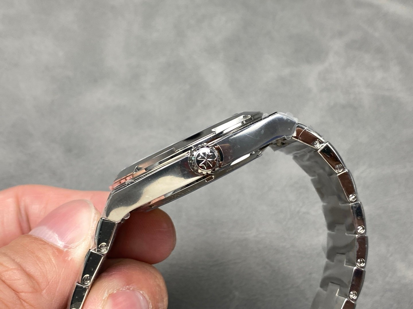 created in 10 months stainless steel case, sapphire crystal case back, stainless steel buckle, water-resistant to 150 metres. Last but not least, we must praise the new “Interchangeable Strap System”; the new Overseas only needs to flick a small stroke between the strap and the lugs to change the strap, each of which can be selected with a steel strap or a belt, truly achieving a 1:1 replica.