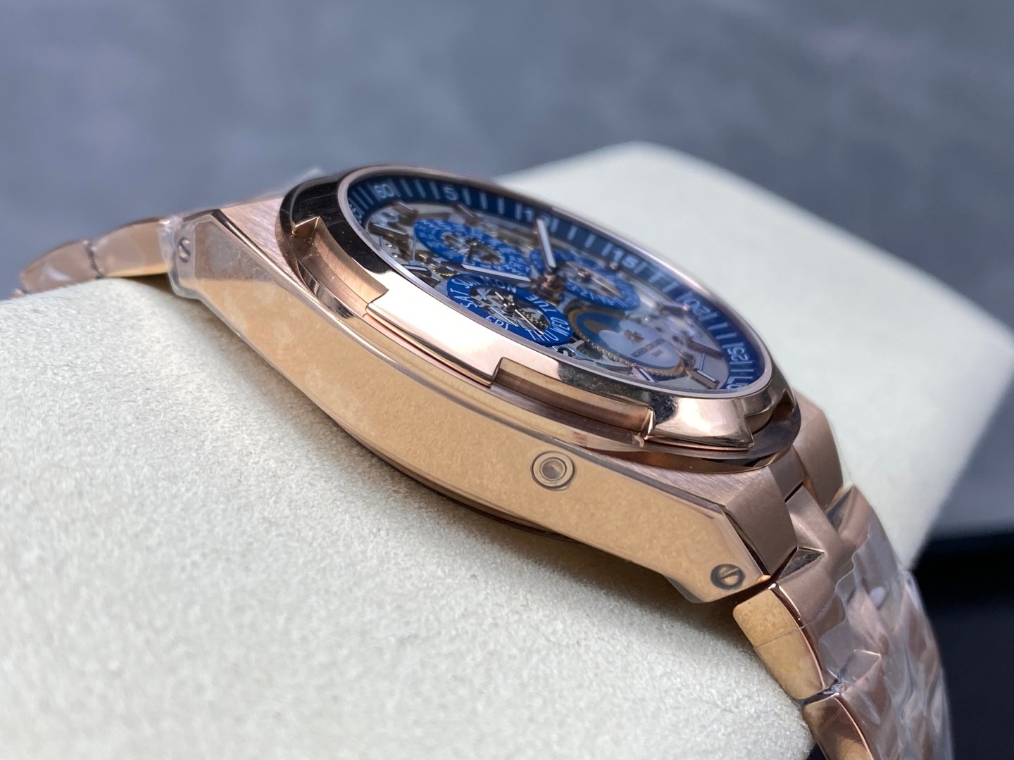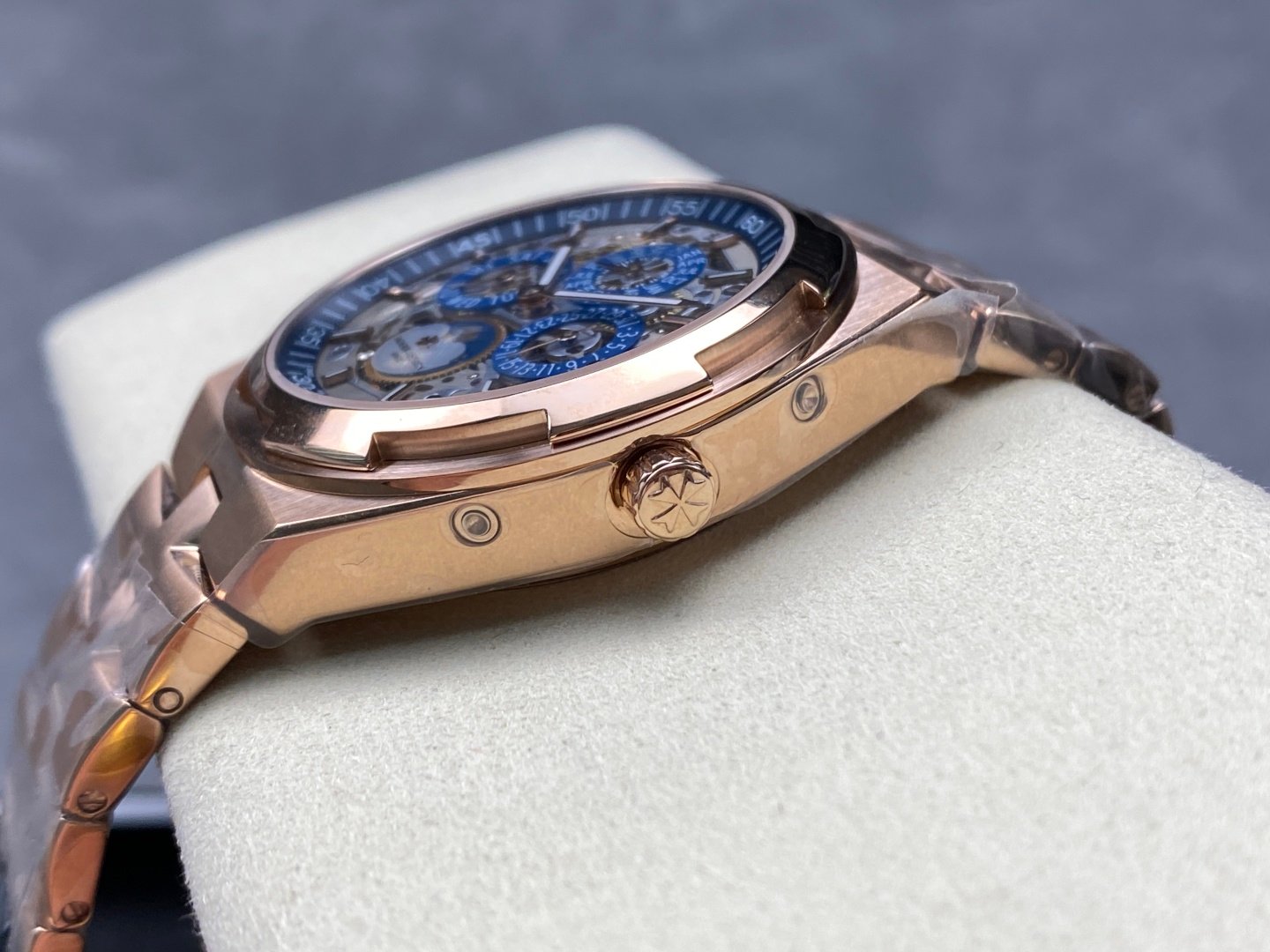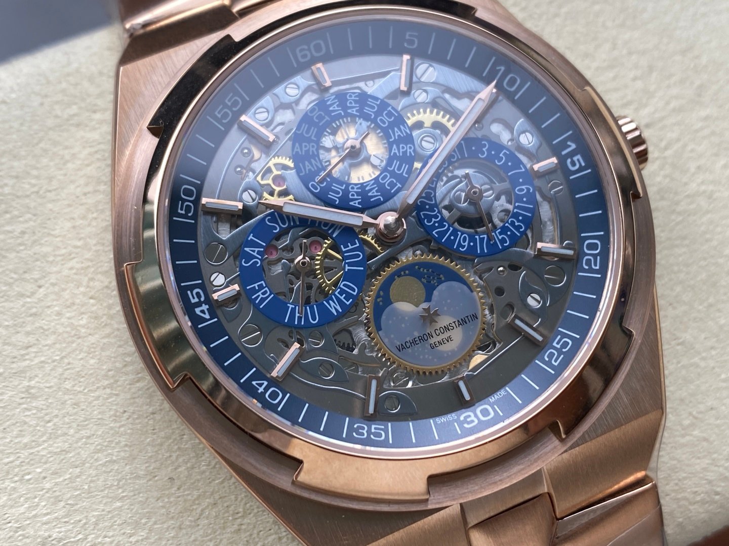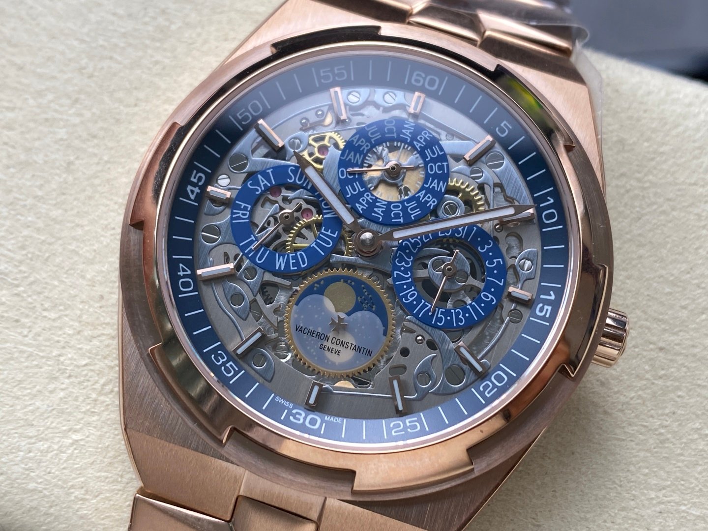 the perpetual calendar is equipped with the same movement as the original, equipped with Overseas oscillating weight, with calendar, day, month, moon phases, and other functions, all functions can be used normally. Front and rear sapphire crystals, sunburst satin-brushed dial with minute scale, ultra-luminescent luminescence. As with the original, the strap can be easily changed with a flick of the small lever between the strap and lugs, and the literal correction adjustment is a true 1:1 replica. The 316L stainless steel case, screw-down crown, and round shape with a slightly oval shape are one of the most characteristic examples of the world.